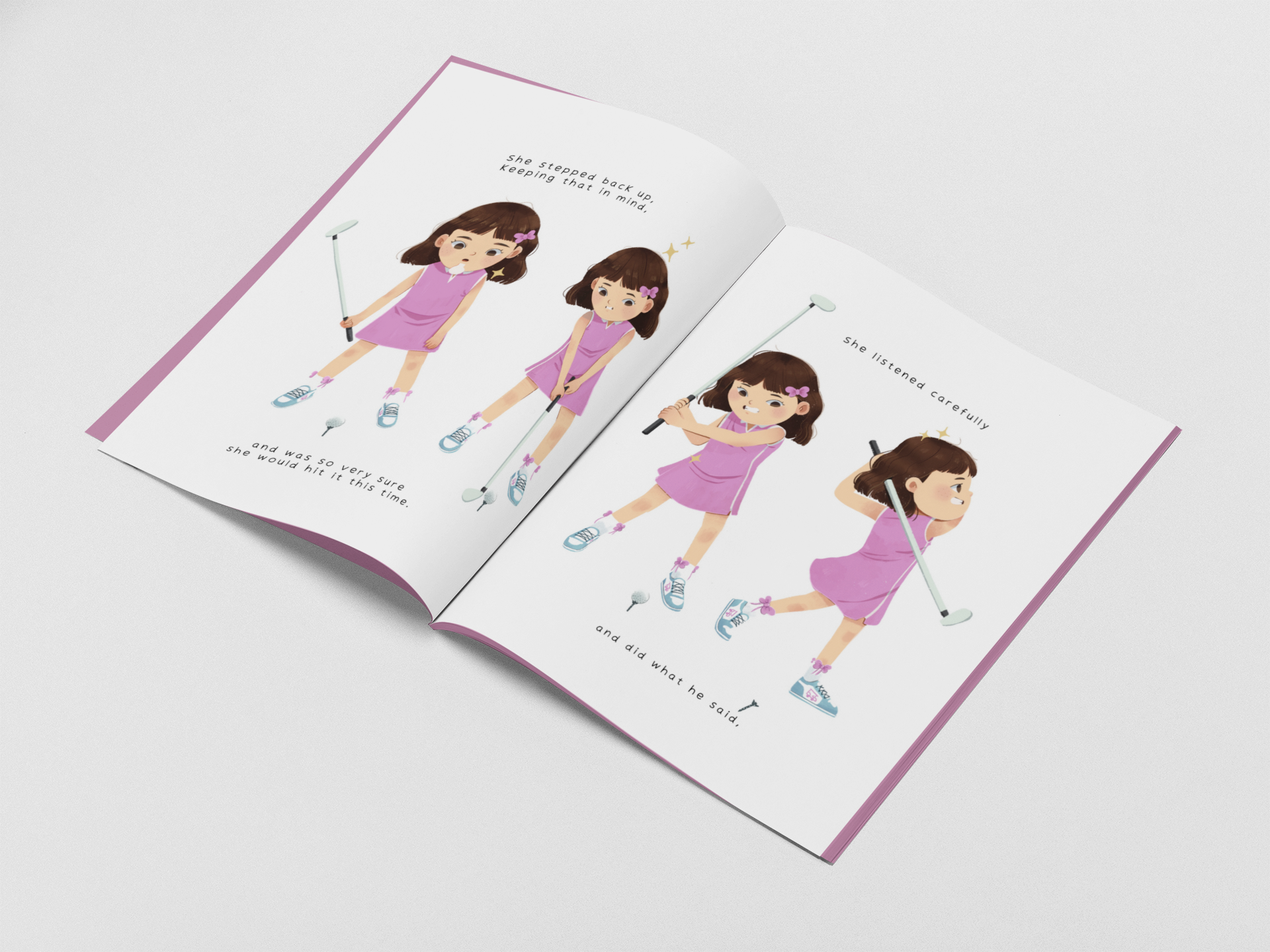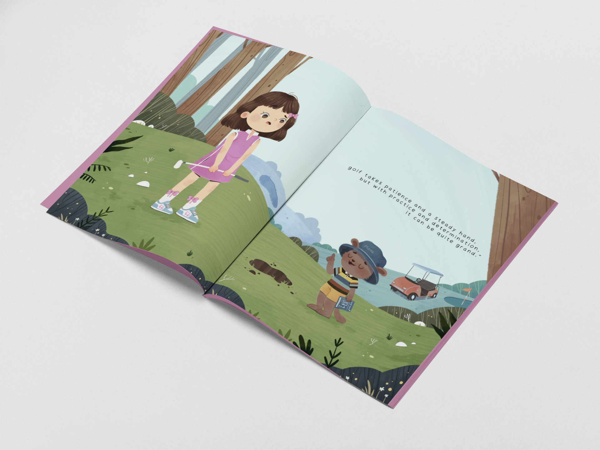 There's no better way to introduce girls to golf than through an exciting, new illustrated journey of a young girl and her Golpher friend. The story teaches girls the importance of perseverance, patience, and building confidence, all while learning the basics of golf. Through a variety of challenges, she will confront both mental and physical aspects, exploring what it means to find herself on and off the golf course.